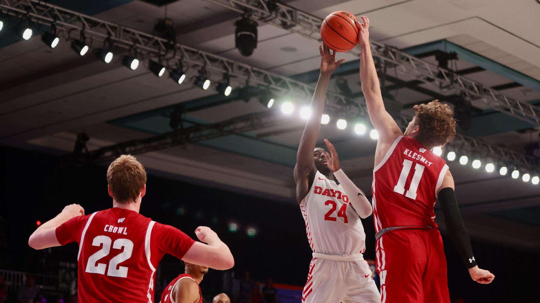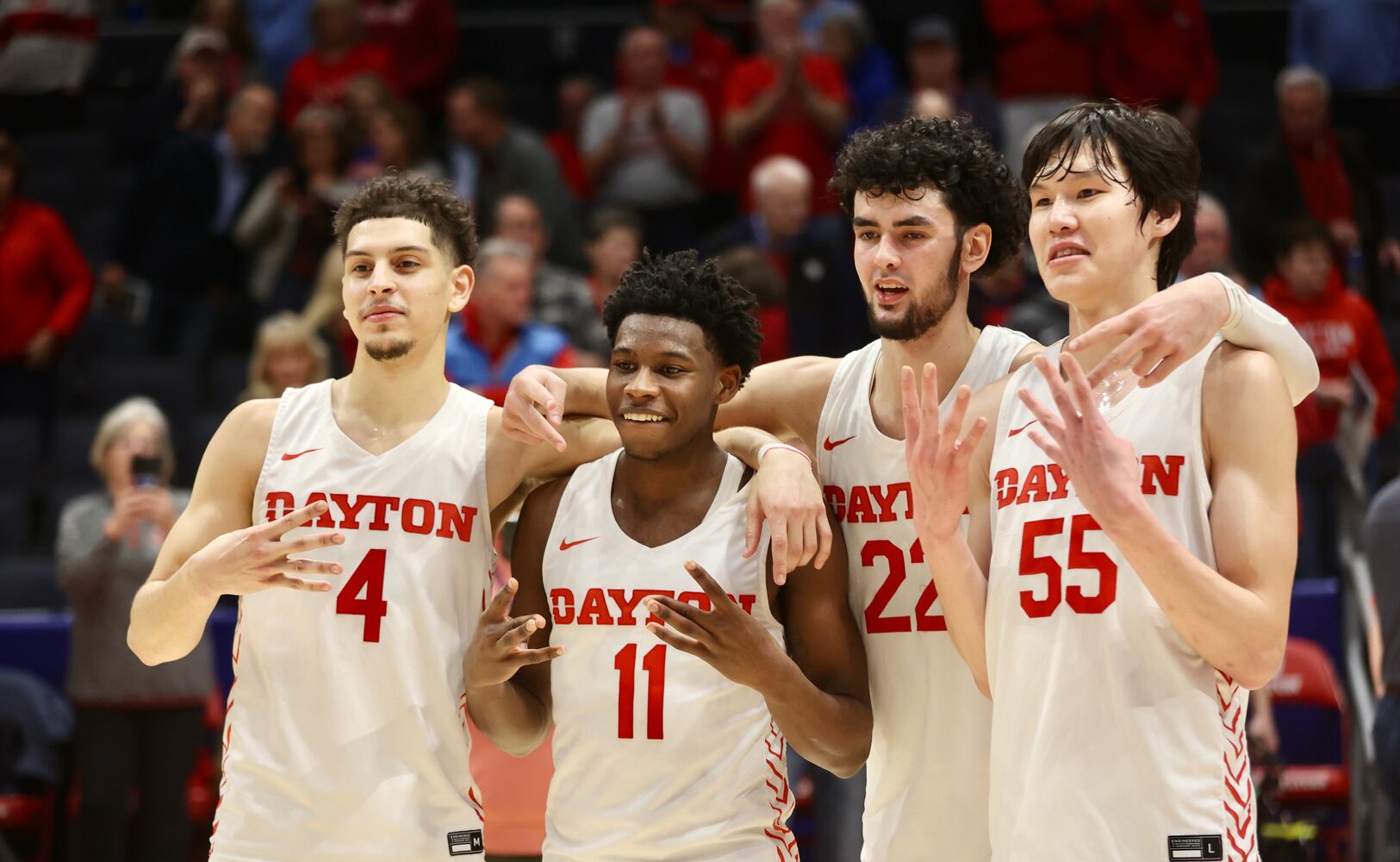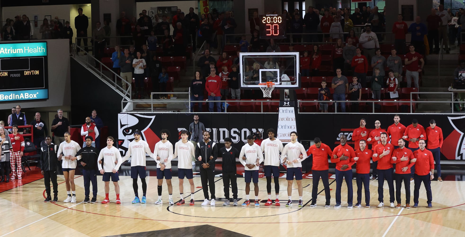 Dayton and Lindenwood stand for the national anthem before their game on Monday, Nov. 7, 2022, at UD Arena. David Jablonski/Staff
