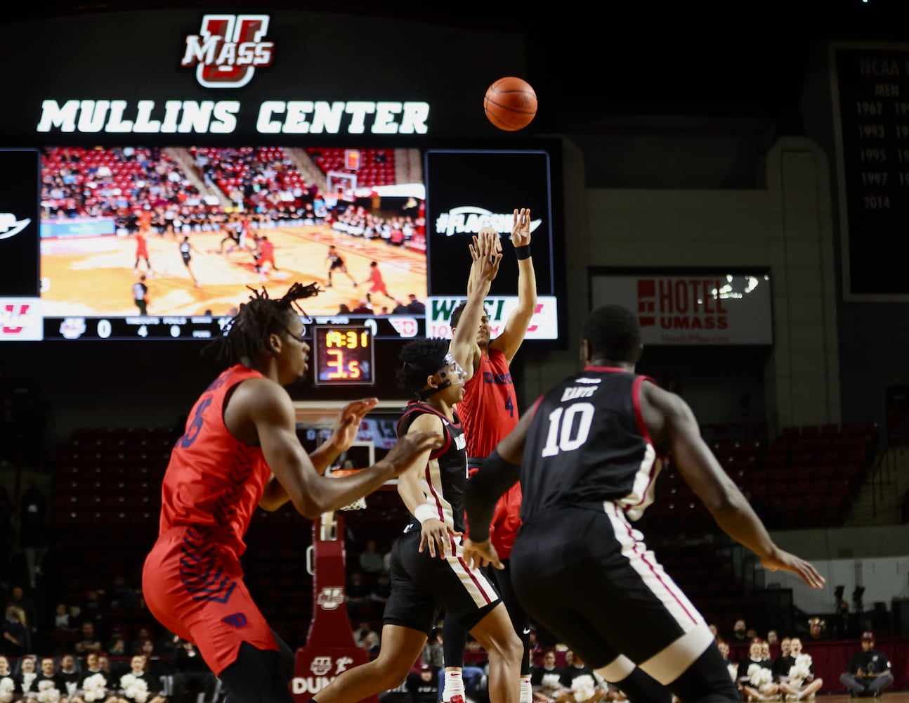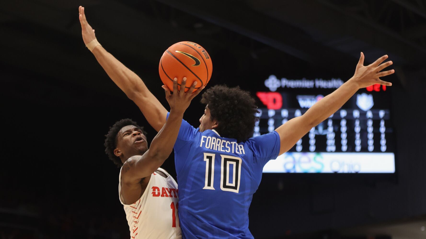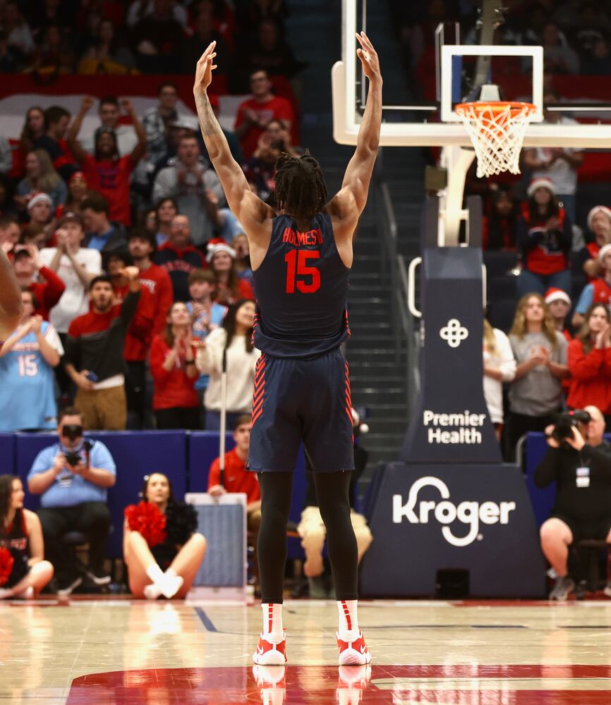 Dayton and Lindenwood stand for the national anthem before their game on Monday, Nov. 7, 2022, at UD Arena. David Jablonski/Staff
