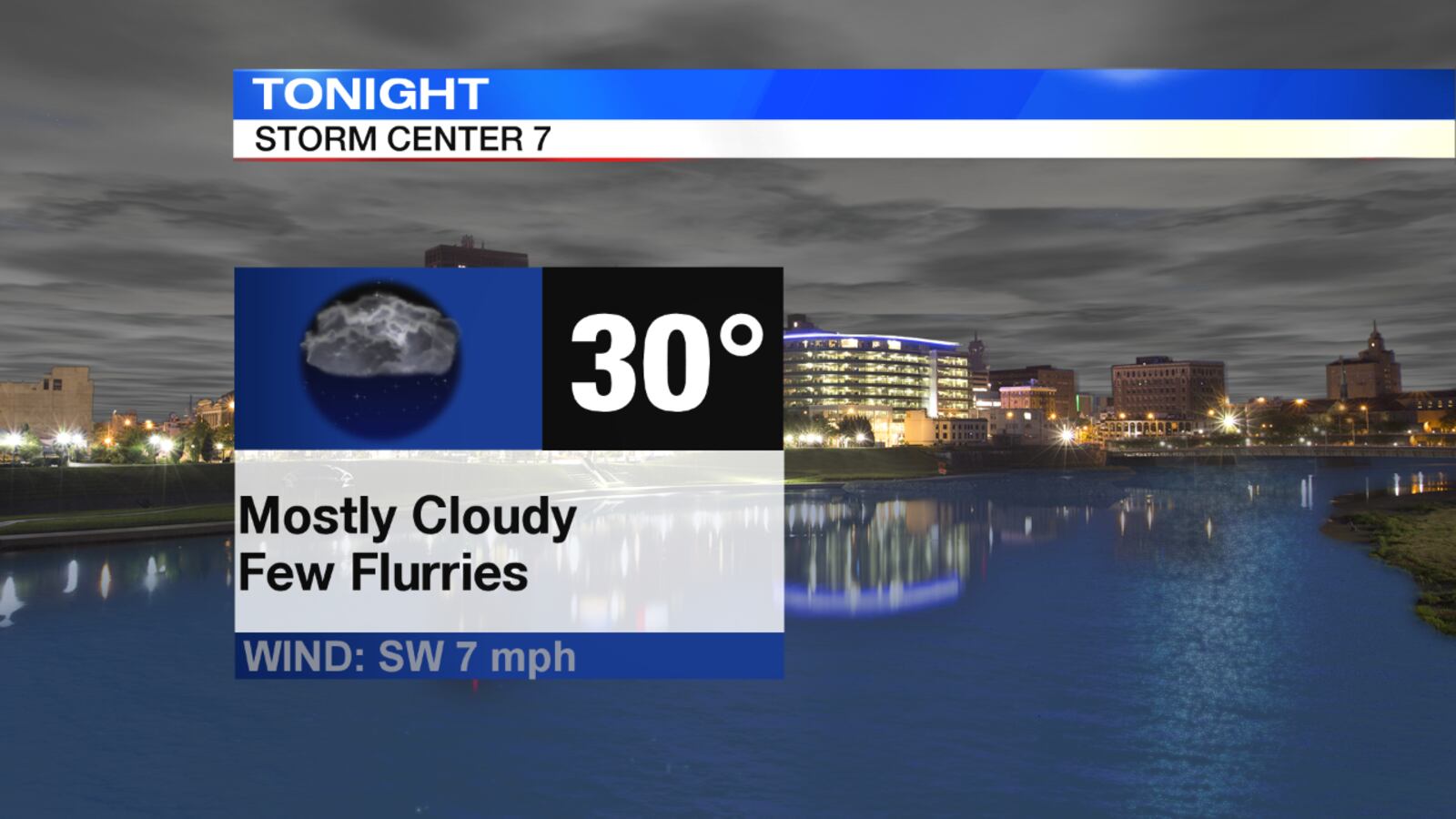 Tonight: There is a slight chance for a few flurries or sprinkles overnight, according to News Center 7 Meteorologist Molly Coates.