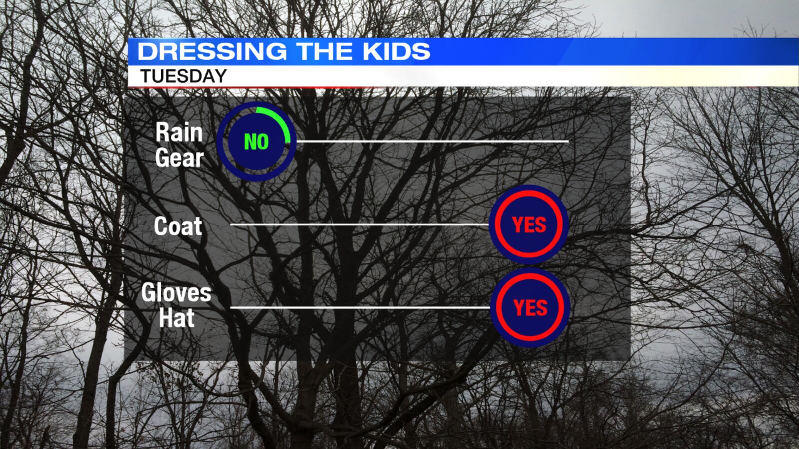 Tuesday: Mostly cloudy and cold with temperatures starting in the teens. Highs will climb into the lower 30s in the afternoon. A weak cold front moves through the area bringing a passing flurry or light drizzle late in the day.