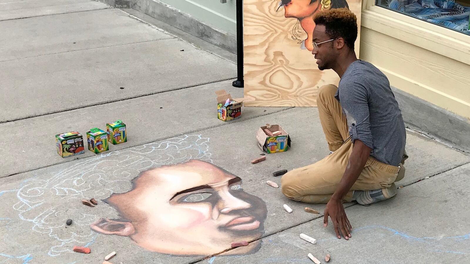 Dayton-based chalk artist Boy Blue is one of the participants in Virtual Art in the City. MICHAEL COOPER/STAFF