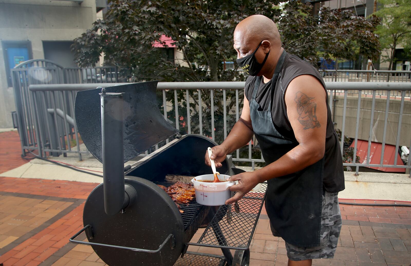 Guy C. Ansley smokes ribs each Friday and by request. Ansley founded Courtland’s Mobile Grill in 2006. He is a staple on Courthouse Square and around Dayton and is known for his ribs, fish, wings and tenders. LISA POWELL / STAFF