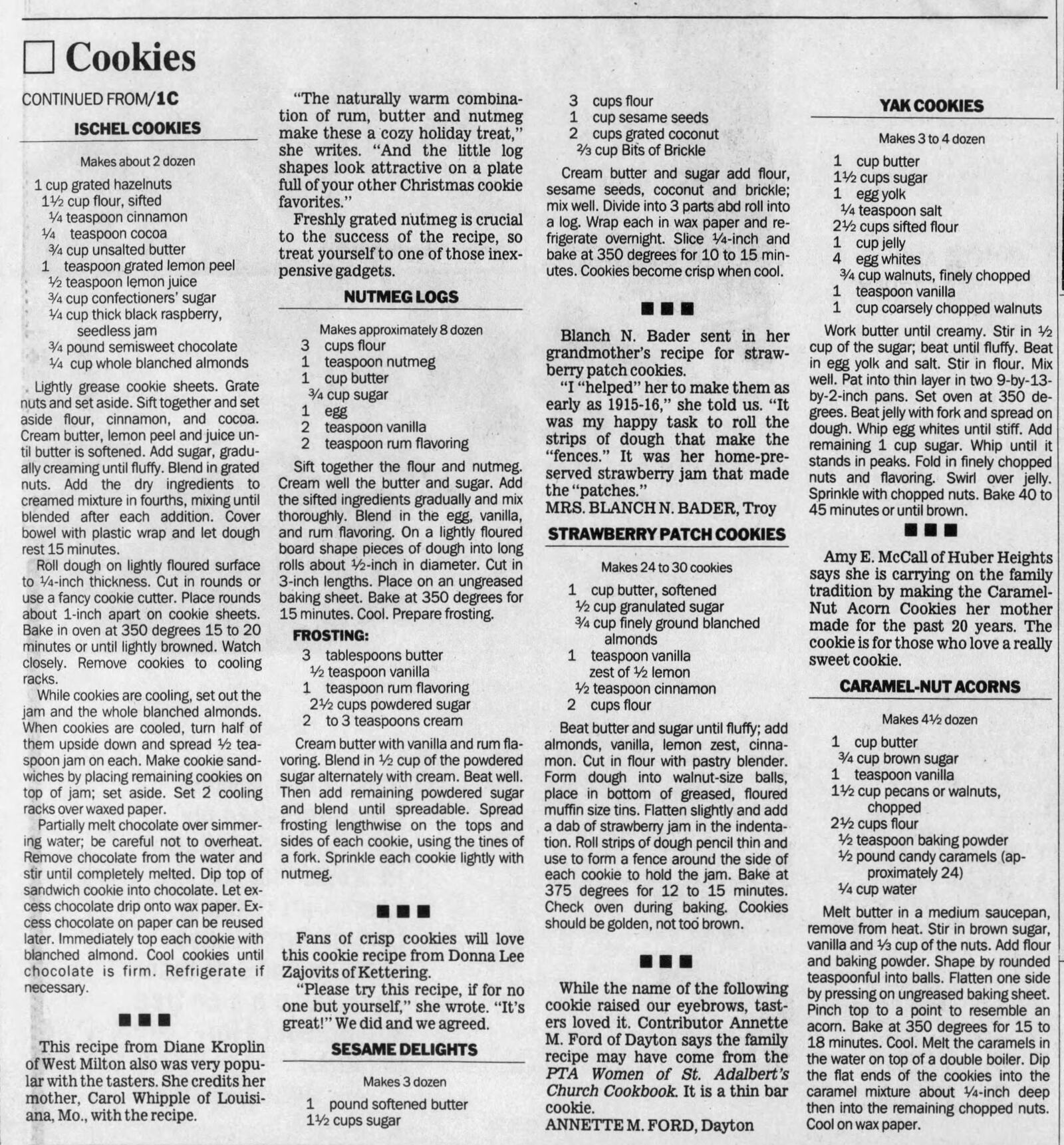 Editor’s Note: The first Dayton Daily News holiday cookie contest was held in 1990 with nearly 400 bakers offering up their creations.