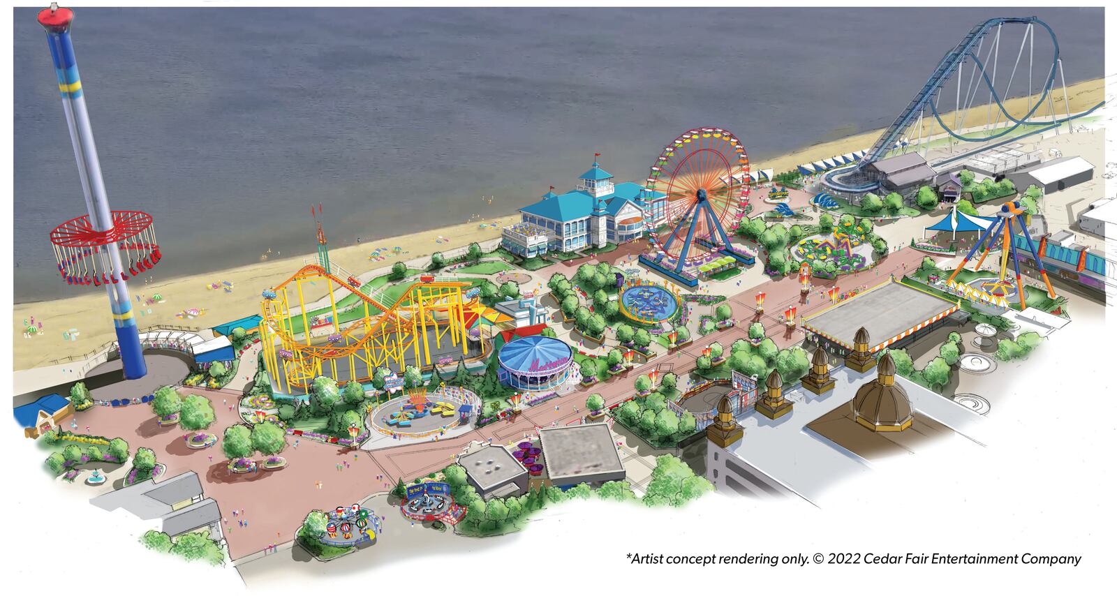 Cedar Point revealed Aug. 11 it will celebrate the scenic Lake Erie shoreline with the addition of The Boardwalk – a modern take on an amusement park mainstay – and the Grand Pavilion when the park opens for the 2023 season.