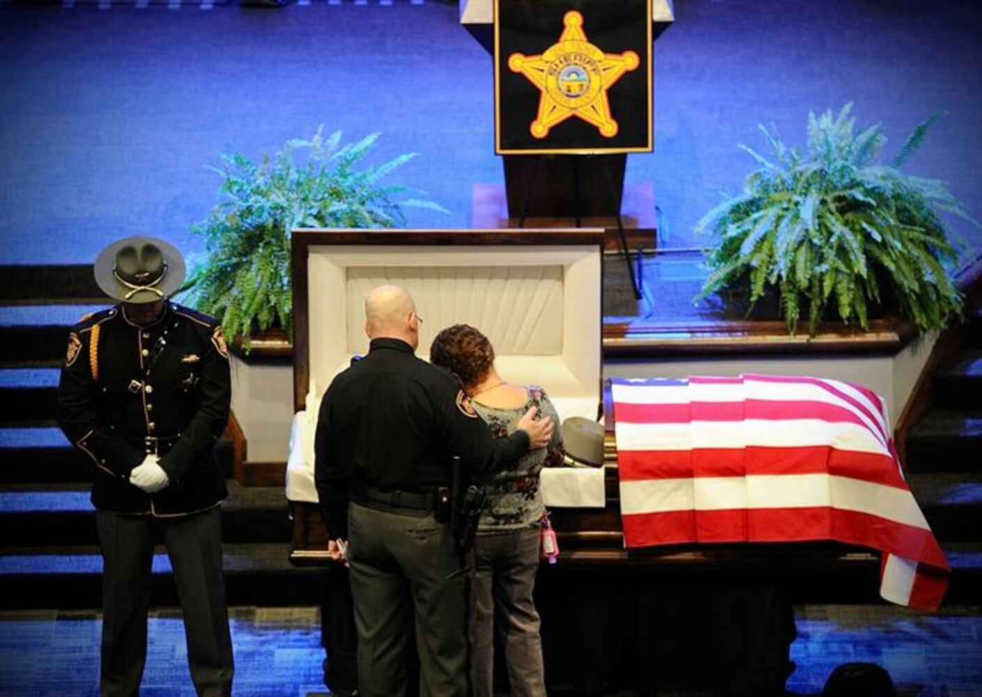 Paying respect to Greene County Sheriff Gene Fischer, at the Dixon Ministry center at Cedarville University Wednesday Nov. 24, 2021.