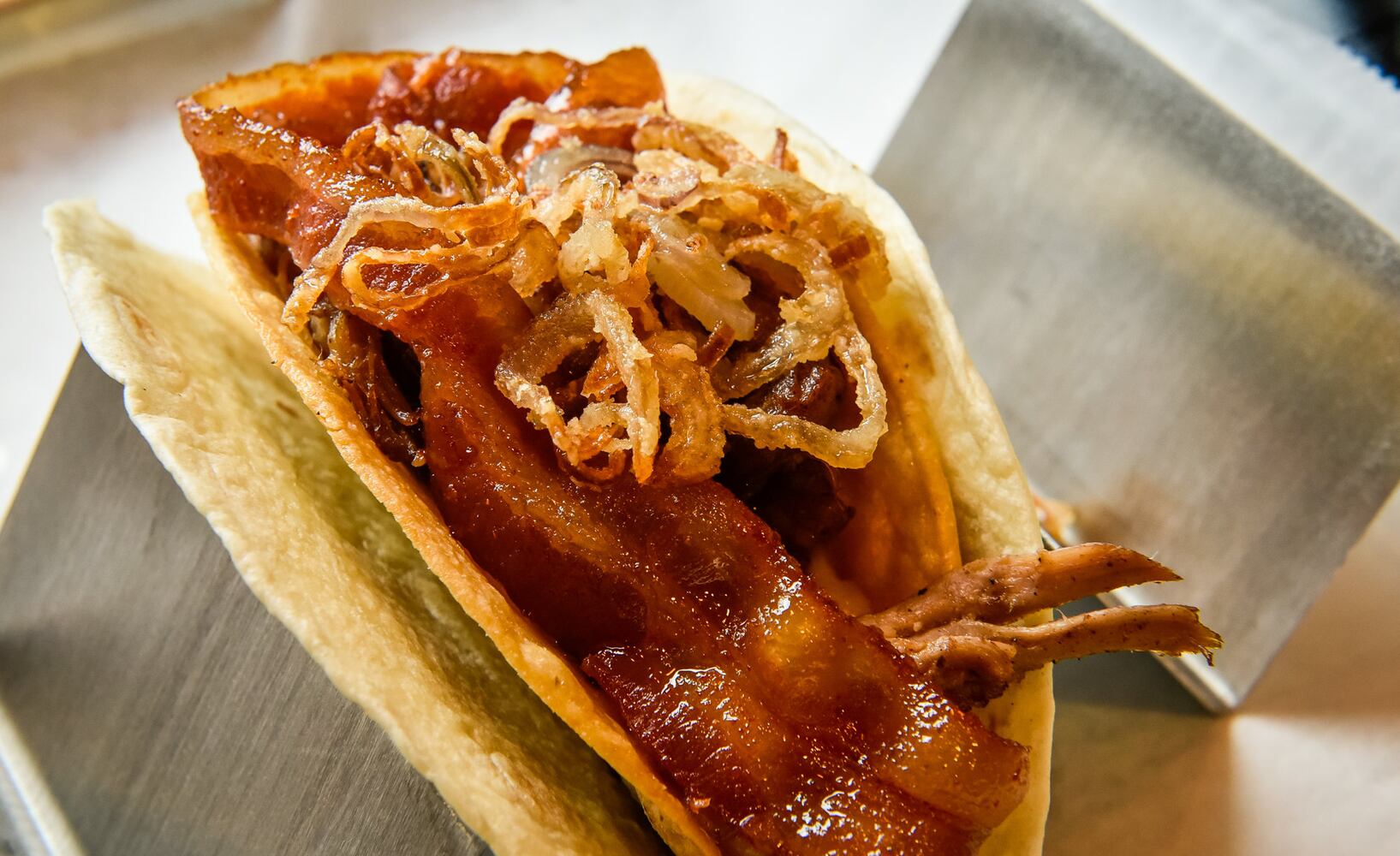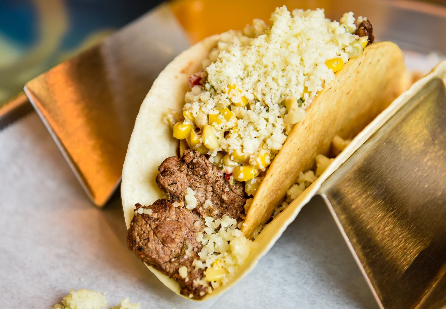 Agave & Rye restaurants offer more than 75 different bourbons and 75 tequilas on their bar menu. The tacos are large and double-shelled, with 13 different protein options, “from ground beef all the way up to kangaroo,” along with vegan and vegetarian options and a wide variety of toppings, Britt said. A burger also is offered.