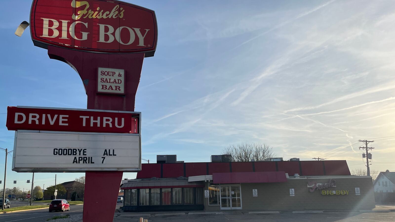 The sign stated, “This restaurant is permanently closed. Please visit us at another Frisch’s Big Boy.”