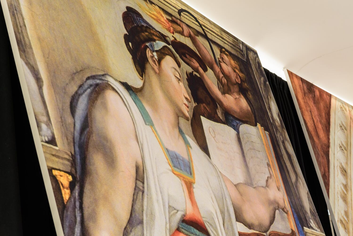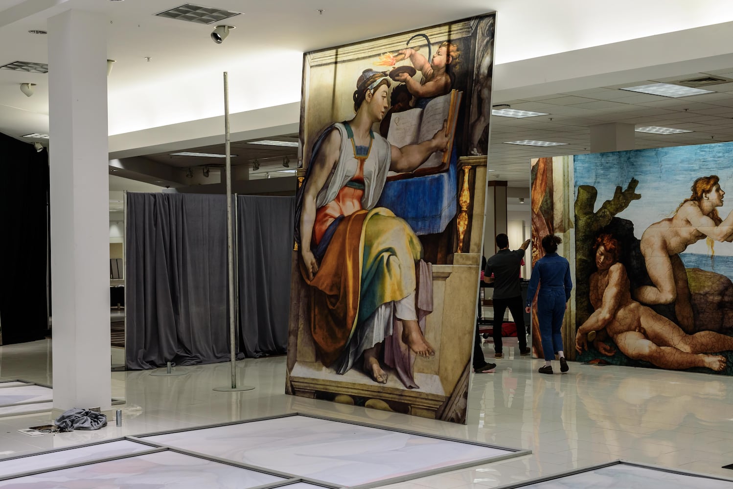 The exhibition spotlights a collection of Michelangelo’s iconic ceiling frescoes from the Vatican’s Sistine Chapel, reproduced in a format that allows viewers to get face-to-face with the masterpieces. The more than 30 artfully displayed reproductions include “The Creation of Adam” and “The Last Judgement.”