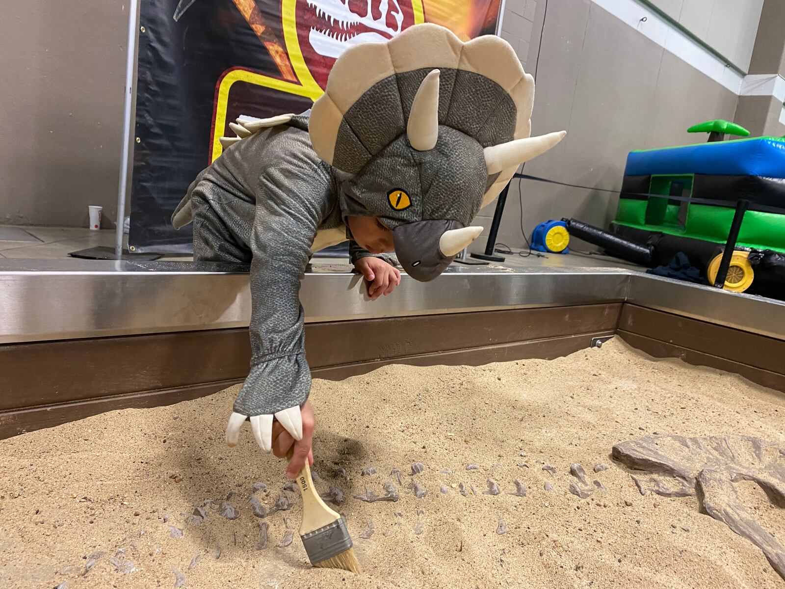 Activities include searching for fossils and gemstones, riding on top of dinosaurs, racing Jurassic Jeeps, playing in bounce houses and doing an array of arts and crafts.