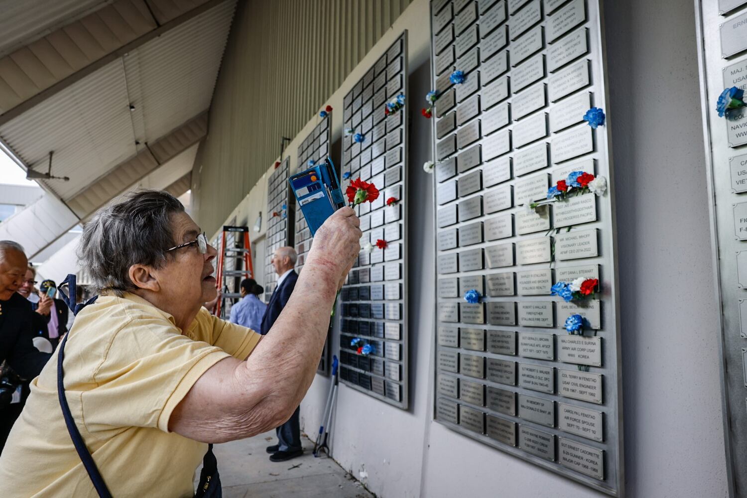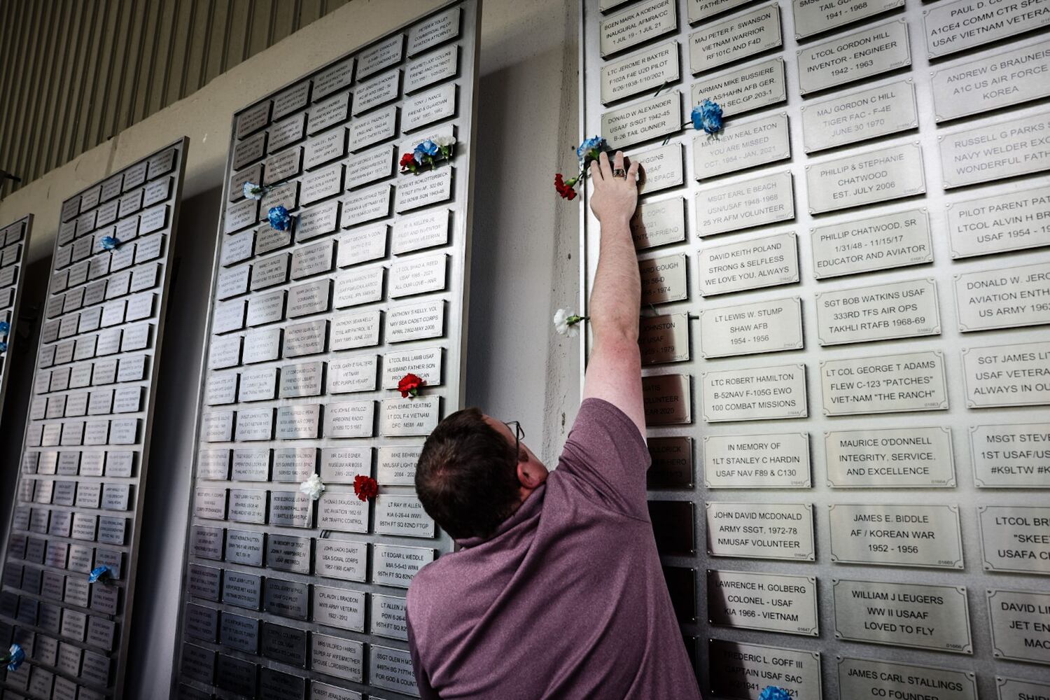 The Air Force Museum held its first Honor Plate Ceremony since the pandemic three years ago. A total of 475 new names were added to the wall. After the ceremony, family and friends hung flowers near their loved one's plates. JIM NOELKER/STAFF